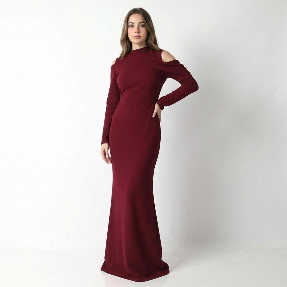 مواصفات فستان سهرة برغندي طويل :